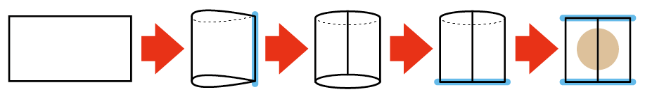 ざっくり言うと、まず二つ折りにして真ん中で接着して、つなぎ目を中心に持ってきて下を閉じて、中身を入れて上を閉じます(早口