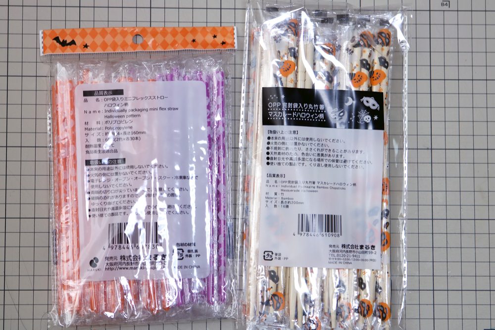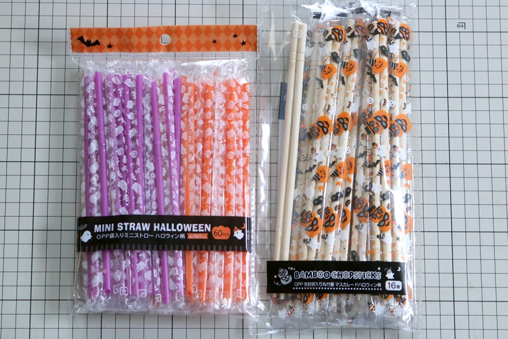 ハロウィングッズコーナーで出会った箸袋とストロー袋、こちらで可愛いミニチュアパッケージができたので共有します。